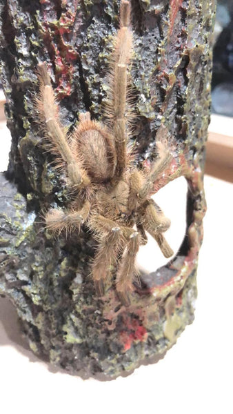 The Singapore blue (Omothymus violaceopes) is a large, arboreal species of tarantula from Malaysia and Singapore. These spiders have been known to grow in excess of 9 inches (23 cm) across. The legs are an intense blue with a brown or gold carapace The male is usually not as vibrant, the species exhibiting sexual dimorphism. The generic placement of the species has been questioned, and specimens identified as males of this species may actually be from a different species. The Singapore blue (Omothymus violaceopes) is a large, arboreal species of tarantula from Malaysia and Singapore. These spiders have been known to grow in excess of 9 inches (23 cm) across. The legs are an intense blue with a brown or gold carapace. The male is usually not as vibrant, the species exhibiting sexual dimorphism. The generic placement of the species has been questioned, and specimens identified as males of this species may actually be from a different species.Singapore blues are commonly kept as pets because of their beautiful colours. Caution should be taken, as Singapore blues are a relatively aggressive species and tend to bite as the first line of defense.