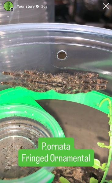 Poecilotheria ornata, known as the fringed ornamental or ornate tiger spider, is a large arboreal tarantula, which is endemic to Sri Lanka. Their legspan sometimes reaches 10 inches (25 cm) in females, and is probably the second largest of the genus, behind P. rufilata.